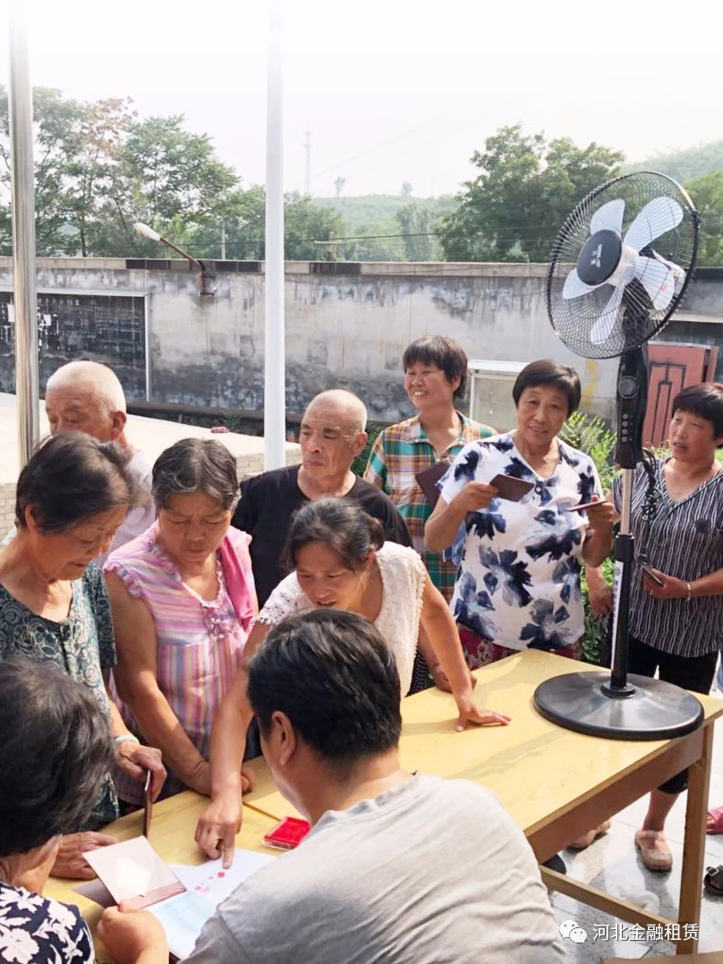 這天正值盛夏,烈日炎炎。河北省金融租賃有限公司(以下簡稱河北金租)在唐縣楊家庵村舉行了扶貧慰問活動,向村民們發放186臺落地電風扇,為楊家庵村貧困戶送去夏日的清涼。