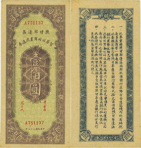 抗日戰爭爆發后,1937年9月下旬,八路軍第一二零師進入晉西北地區,創立了晉西北抗日根據地,建立了興縣農民銀行。到1938年12月,開辟了以大青山為依托的綏西、綏南、綏中三塊游擊根據地,并逐步同晉西北根據地連成一片,構成晉綏抗日根據地。1940年5月,以興縣農民銀行為基礎,成立了晉西北農民銀行,后改為西北農民銀行,發行西北農民幣,流通于晉綏地區。后晉綏邊區與陜甘寧邊區統一為西北解放區,該行與陜甘寧邊區銀行合并,統稱西北農民銀行,西農幣成為整個西北解放區統一本位幣。從1940年5月-1948年11月,西北農民銀行共發行貨幣15種面額,26種票樣,約3.8億張,合計約為6439億元。