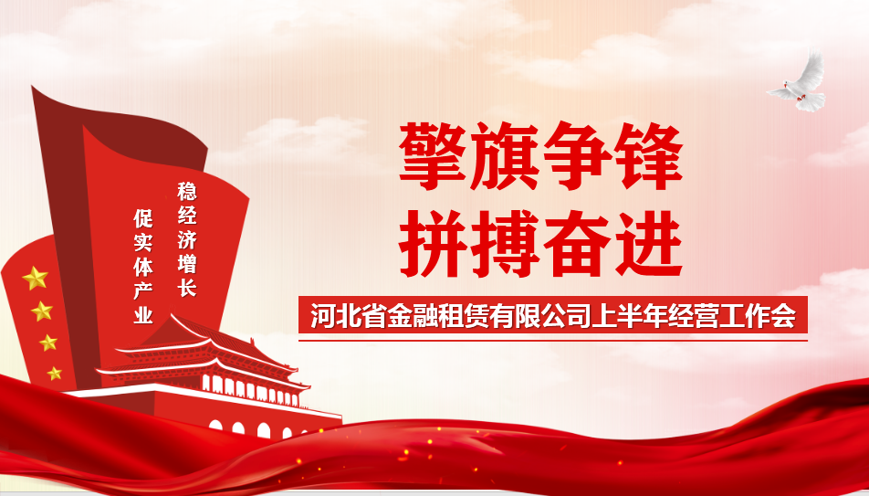 擎旗爭鋒,拼搏奮進。下半年,河北金租將以釘釘子精神完成各項經營任務,在克難奮進中推進公司高質量發展。同時,履行金融機構的職責使命,用好各級政府落實扎實穩住經濟一攬子政策措施,積極作為,優化服務,努力惠及產業客戶,積極服務實體經濟。