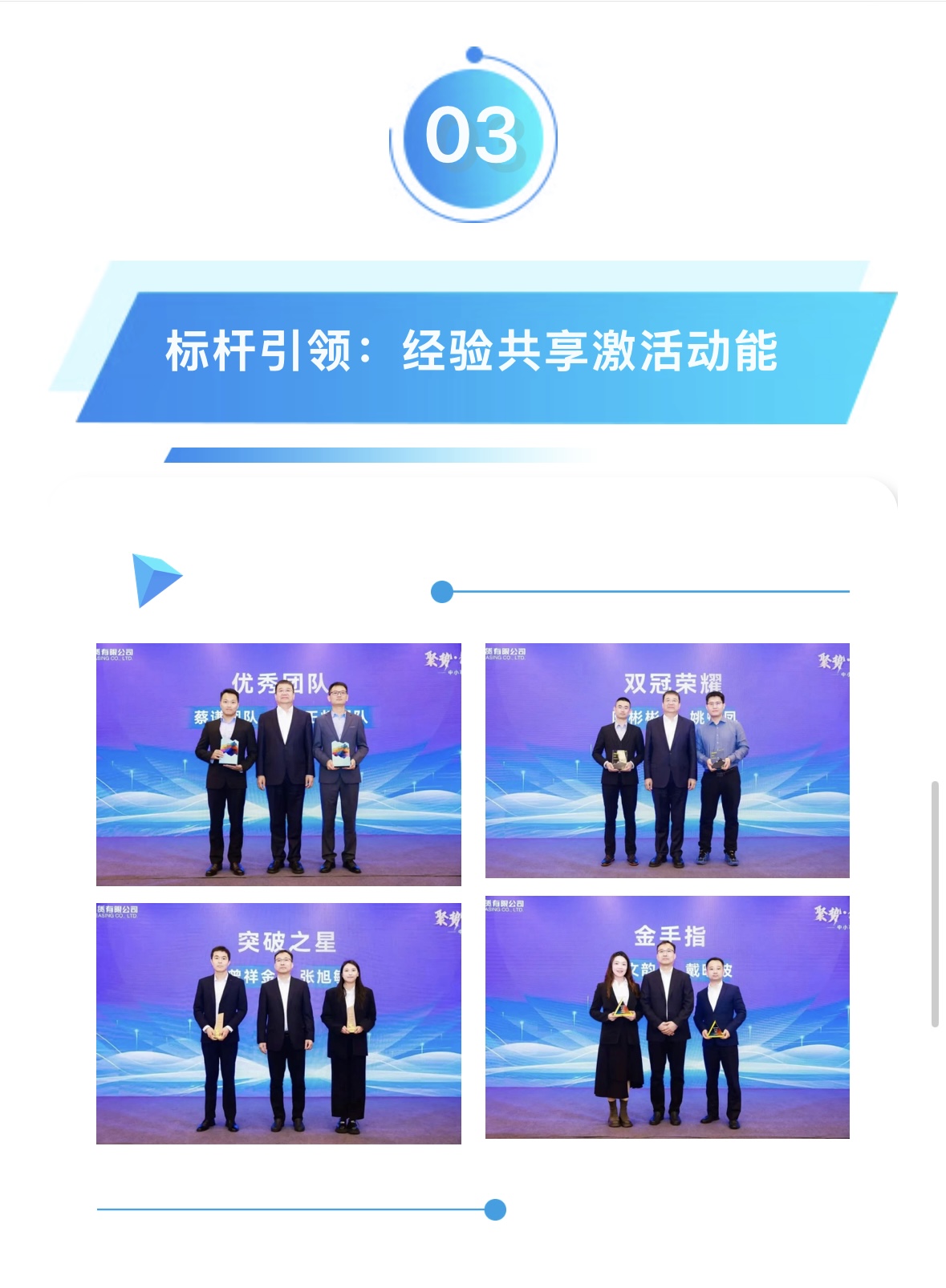 在榮譽(yù)時(shí)刻環(huán)節(jié),21位優(yōu)秀員工依次登臺(tái),接受屬于他們的榮耀時(shí)刻。通過(guò)優(yōu)中選優(yōu),團(tuán)隊(duì)推出由6位業(yè)務(wù)精英,登臺(tái)分享業(yè)務(wù)破局密碼,內(nèi)容涵蓋客戶談判策略、優(yōu)秀團(tuán)隊(duì)經(jīng)營(yíng)理念、渠道建設(shè)經(jīng)驗(yàn)等……現(xiàn)場(chǎng)伙伴受益匪淺。