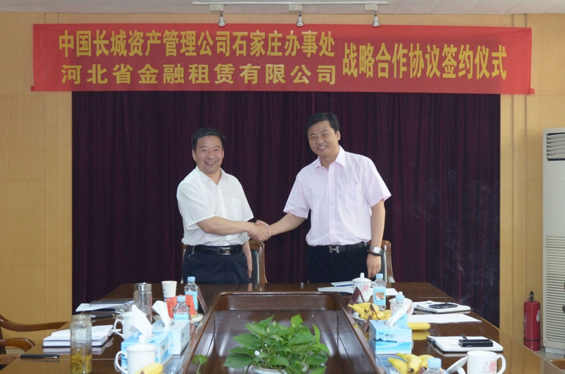 2013年5月31日,為推動各領域業務合作,促進雙方共同發展,中國長城資產管理公司石家莊辦事處總經理齊銀庚一行與公司總裁徐敏俊及各位領導進行了戰略合作洽談會。在會上,雙方領導本著平等互利、優勢互補、資源共享的原則友好協商,決定建立全面業務合作關系。并就風險控制、客戶拓展、資產業務等方面進行了廣泛的交流,對彼此未來的合作前景和方向深入地交換了意見。雙方將依托各自的行業特點和業務范圍,在資產管理、信托業務、金融租賃、融資業務等方面進行全面合作。努力實現優勢互補、大力促進協同發展。當天雙方正式簽署了《戰略合作協議》,確立了合作關系。